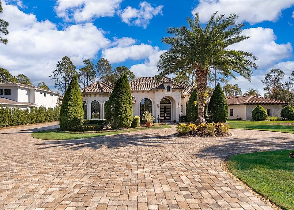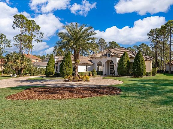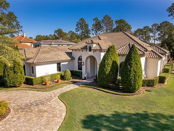 Discover the perfect blend of privacy, space, and resort-style living in this beautifully appointed single-story residence located in the guard-gated community of Bella Collina. Set on an oversized homesite with manicured landscaping and a long paver driveway, this custom-built home offers an exceptional indoor-outdoor lifestyle with a bright open layout, multiple living spaces, and stunning natural surroundings. Inside, the home features high ceilings with wood-beam accents, elegant tile flooring throughout the main living areas, and expansive windows that frame views of the outdoor living areas and mature landscaping. The formal living room flows seamlessly into the family room and kitchen, creating an airy and inviting environment ideal for both everyday living and entertaining. A spacious game room with vaulted ceilings and abundant natural light opens directly to the lanai, offering the perfect setting for billiards, media, or multi-purpose use. An additional flexible living space provides a comfortable retreat for movie nights or a private lounge. The outdoor areas are a standout feature of this property. The expansive covered lanai, equipped with retractable sliding doors, overlooks the sparkling pool with fountains and sun shelf. The oversized backyard includes a fully equipped private soccer field, offering a unique recreational amenity. Beyond the pool area, the large, fenced, park-like yard provides rare usable green space, mature trees, and tranquil views of the surrounding nature preserve. This property is located within one of Central Florida’s most desirable gated golf communities, offering access to world-class amenities including the Sir Nick Faldo designed championship golf course, resort-style pool, fitness center, tennis facilities, dining, social events, and miles of scenic walking paths. A private, serene setting combined with elegant finishes and exceptional outdoor living—this is the Bella Collina lifestyle at its best.