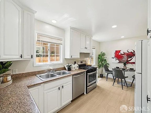 Experience refined single-level living in this thoughtfully upgraded 5-bedroom, 2-bath residence spanning approximately 2,002 sq. ft. in the desirable Ashland neighborhood. Designed for flexibility, the home features two distinct living areaseach with its own entryperfect for multi-generational living, guest quarters, or income potential. Enjoy modern finishes throughout, including recessed lighting, new flooring, a gourmet kitchen with stone countertops and a 5-burner gas range, and updated baths. Dual-pane windows and central heating provide comfort, while a fenced backyard with patio and storage shed offers private outdoor space. Located near major freeways, parks, shops, and San Lorenzo schools, this residence seamlessly blends style, function, and opportunitya true must-have home.