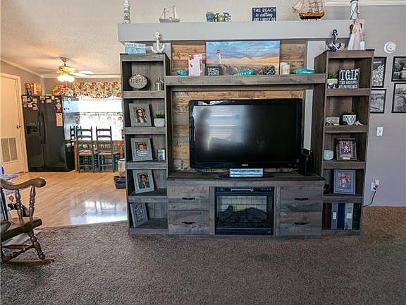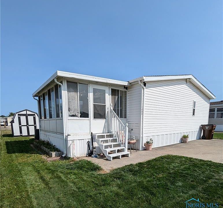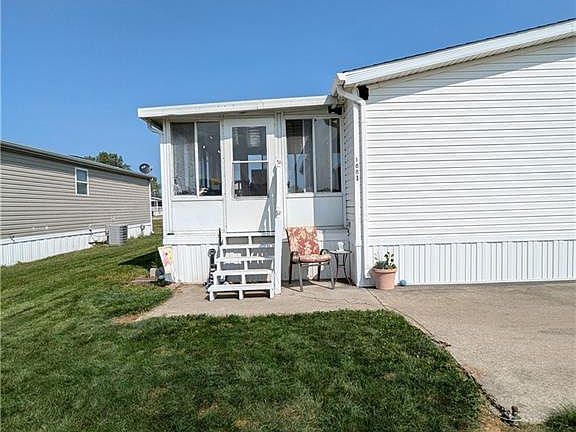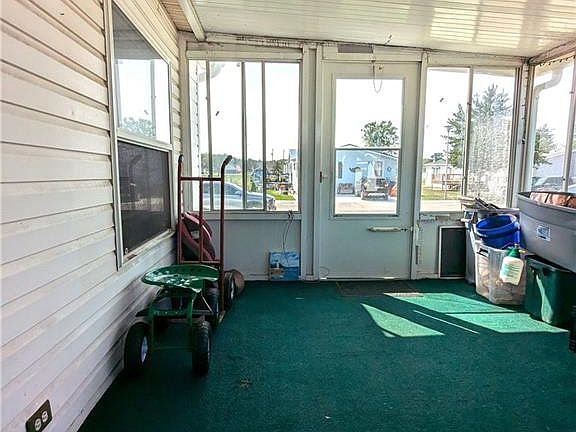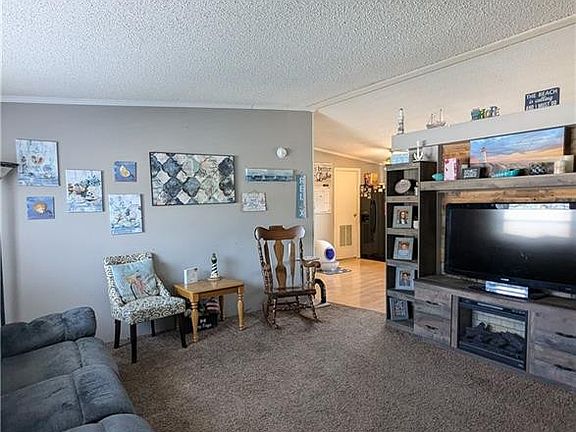 Enclosed front porch sets this home apart. Vaulted ceilings in the living, kitchen and dining areas make this home feel bright and open. Island for extra prepping space in the kitchen. Primary has a generous walk-in closet and connected bathroom. Primary bath comprises of a walk-in shower and garden tub. Separate utility/laundry room. Shed for storage. Roof 2017. Contingent on seller securing suitable housing. Buyer must be approved by the park.