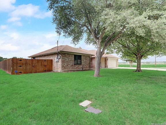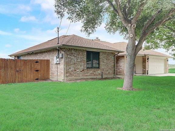 Come see this huge corner lot nestled in an established New Braunfels neighborhood and equipped with a side extra parking oversized garage and Huge cement poured slab with a side gate entrance that is perfect for a RV or boat to build a workshop or mother in law suite , pool , and or pool house, and much more .This four bedroom home can be versatile and be used bedroom/ office or media/playroom with 2 full baths. This Texas style home features a split floor plan with travertine tile floors, wood vinyl floors, and new carpet. This home also offers a recently leveled foundation with engineers report /warranty and new new roof, plantation shutters, new windows, water softener and bathroom updates. This four sided brick house has great bones, skylight and a wood burning fireplace for added charm. All appliances convey and is empty and move in ready! This is a must see!