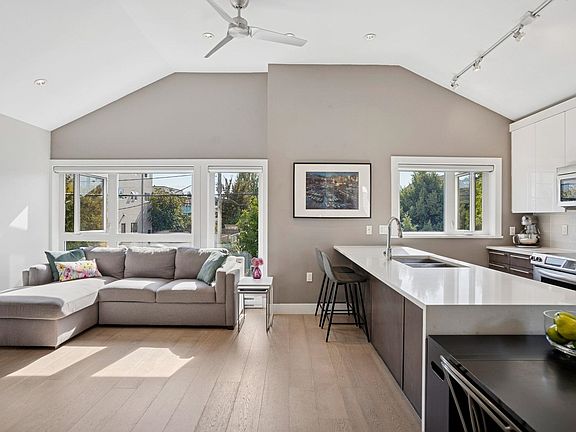 Located in the heart of Vancouver's vibrant Commercial Drive & the unofficial home of World Cup 2026 sits Kitchener Mews, a boutique 10 unit development with an amazing community of neighbors & soon to be friends. This 2 bed & den home features an amazing elevated outlook with vaulted ceilings & loads of natural light on the main level. The kitchen is equipped with s/steel appliances, stone countertops & there's new paint & brand new carpets throughout. The open concept living space is at the heart of the home with direct access to your cozy patio. Also included is a secure parking, storage locker, bike room & a common workshop. There's an obvious "pride of ownership" through the complex & the location to this incredibly diverse & amenity rich neighbourhood couldn't be better.