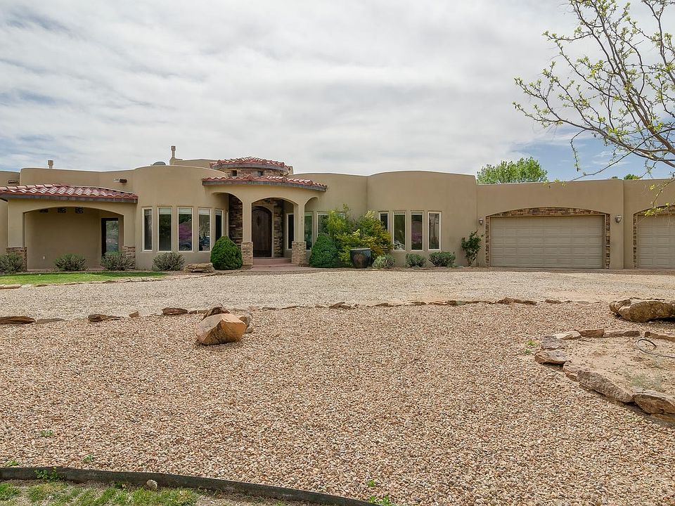 Beautiful estate home on a full acre next to the Bosque and bike trails. Tuscan Old World style with gorgeous granite countertops in kitchen and all bathrooms, plus travertine tile floors and diamond plaster interior finish. Solid alder cabinets and doors throughout. Sub-Zero refrigerator and wolf stainless steel appliances, including built-in outdoor grill in back yard. Master suite with gas fireplace, huge jet tub and separate master shower with double shower heads. Over-sized extra-deep garage fully finished with skylights, epoxy floors and tons of room for storage. Perfect place to park an RV next to the house and horses are also acceptable.