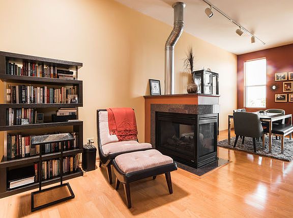 This is the one you've been waiting for! Private entrance two-bedroom two-bathroom loft style condo. Open floor plan with 10-foot ceilings and exposed ductwork. Gleaming hardwood flooring flowing throughout the kitchen, living room, and dining room. Kitchen with 42-inch cabinets, large island, and granite countertops. Double sided gas fireplace separates sitting area and dining area. Family room with sliding glass door to private covered oversized patio. Master bedroom large enough for king size bed. Attached en suite and walk in closet with custom closet organizers. Attached 2 1/2 car garage. Come make this your home today. Investors welcome, unit can be rented!