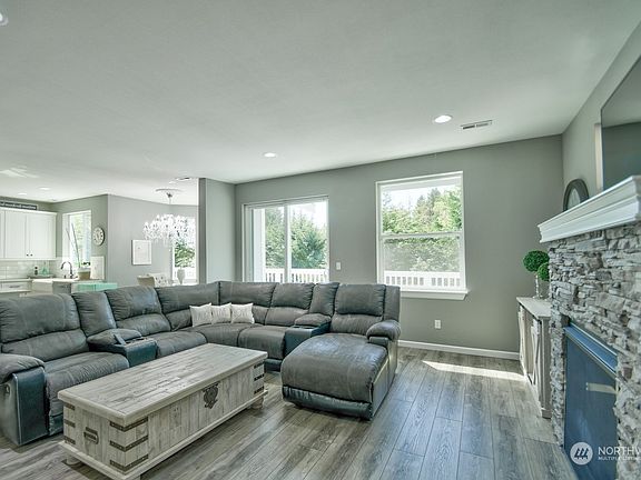 Bling Bling your new home is calling! Experience luxury living in this exquisite custom home nestled in the desirable Tumwater Hill neighborhood. With 5 bedrooms, 2.5 baths and a host of high-end features, this home is a rare find. Enjoy the beauty of chandeliers, walk-in closets, and a stunning bathroom with a deep soaking tub and smart bidet. The kitchen is a chef's dream with stylish cabinetry and black stainless appliances. The home's privacy is unmatched, thanks to the lush greenbelt behind it. If you desire a low maintenance yard, this is the property you've been looking for. This home truly is a gem! Zillow information is incorrect- property has never been foreclosed on and is not in arrears.