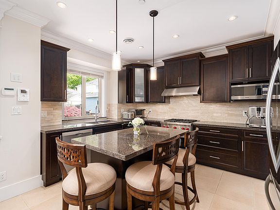 GORGEOUS HOME IN SOUTH GRANVILLE LOCATION ! Extremely well kept home, over 2,600 sq.ft. sits on high side of street. Excellent floor plan with high ceiling entertaining sized living and dinning, gourmet kitchen with high end appliances and kitchen cabinetry, family room opens onto patio. 3 bedrooms up, all with ensuite, 2 bedrooms down can be easily turned into in-law suite with separate entrance. Other features including the media room, hardwood floor thru out the main, RADIANT HEAT, AIR CONDITIONING, HRV, gas fireplace. 2 cover garage parking and an open parking spot access from the lane. CLOSE TO GOOD SCHOOL CATCHMENTS; MAGEE HIGH SCHOOL & MCKECHNIE ELEMENTARY, CROFTON, YORK HOUSE & ST. GEORGE'S PRIVATE SCHOOL, UBC, SHOPPING, RICHMOND, TRANSIT. DON'T MISS ! MUST SEE !