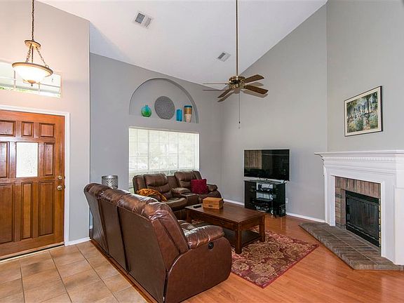Home w/private car court/sport court towards the end of quiet tree-lined street. Open floor plan w/family room w/wood-burning fireplace & master down. Upstairs game room w/add'l flex space, 3 secondary bedrooms & a full bath. Several seller updates/upgrades including: roof, seamless gutters & exterior paint (<1 yr); wood laminate flooring thru out; stainless steel appliances & water heater (<2 yrs); Trane A/C (3 yrs); recent new backyard fence & full-yard sprinkler system. Owned alarm system.