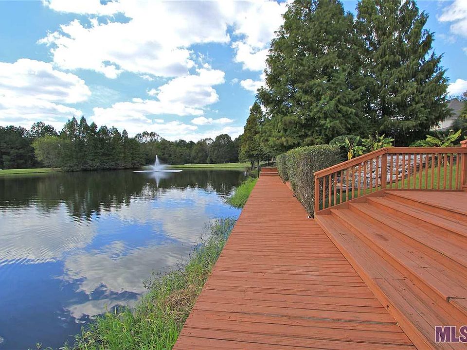 REDUCED!! New price reflects some interior updates needed. Rarely will you find a home like this for this price with these AMAZING LAKE VIEWS & gorgeous exterior amenities including: Heated, vanishing edge, GUNITE POOL (resurfaced & retiled) with flow of water onto stacked ROCK WATERFALL overlooking lake; heated HOT TUB with waterfall to pool; double tiered decks, freshly painted & with tons of seating; over 500sf of covered patio; and patio around pool also newly resurfaced. 5 Bedroom plus OFFICE and huge bonus room with built in desks and storage. Triple split floorplan with master & 2 other bedrooms downstairs plus SURROUND SOUND SYSTEM throughout interior & exterior. Upstairs has: 2 bedrooms, private full bath, huge bonus room and private laundry chute! Downstairs has all new wood floors in Living Room, hall & 3 bedrooms. HUGE entertainers kitchen has: center island with raised bar for barstools, gas stove, 2 dishwashers & 2 ovens and refrigerator remains. Large dining area lined with cabinets plus computer nook. Large, walk-in utility room has sink area, counter folding space, lots of storage and washer & dryer remain. Master bedroom overlooks pool & lake and has its own double sided gas log fireplace with the master bath. Spacious master bath has large jetted tub, walk-in shower, his & her separate sink areas & large walk-in closet with built-ins. Other amenities include: tons of added recessed lighting, wired for security, 8 year old architectural shingle roof, oversized garage with separate storage, front fountain remains. Exterior has been completely redone after flood including: all new stucco, freshly painted on all of exterior of home; all decking & pier completely painted; lush landscaping.