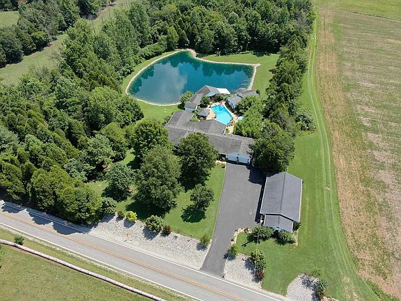 Paradise awaits you in this once in a lifetime opportunity to live at your own personal resort! One level ranch home featuring 4 bedrooms, 4.5 baths, & an attached 2.5 car garage with approximately 5.5 acres. Amenities galore are included in this fantastic oasis like property. Whether its for your personal enjoyment, a weekend get-away, or maybe a Bed and Breakfast property, it is sure to satisfy your idea of Living the Dream! Living room features Bamboo hardwood flooring, travertine tiled wall, & double sided fireplace. Dining room hosts a tiled breakfast bar & tiled fireplace. Open kitchen & breakfast nook area that flows nicely into the family room. Kitchen boasts an island, oak cabinets, appliances, & stone countertops. The family room is highlighted with Bamboo floors, corner gas fireplace & has French Doors that lead to the Sun Room. Along the hallway you'll find two guest bedrooms; one features it's own private bath. Off the opposite end of the home is the original Master suite that has its own walk-in closet plus private bath. A new Master suite added 15 years ago has access from the hallway and boasts its own private office, 2 lighted walk-in closets, & full bath. This Fabulous Bedroom also has doors to its own covered patio that leads to the backyard oasis. French Doors from the Breakfast Nook lead you to an oversized Sun Room/Florida room, boasting a bar area, half bath, & access to the pool. A large laundry room accesses to another full bath & the attached garage. In the attached garage is a sunbed tanning room which is heated & cooled; but could also be used for storage. Alongside the driveway to the home is a detached 3.5 car garage with 3 openers & remotes, plus a heated plant storage room (for unpotted plants to stay during the winter). Encircling the Backyard paradise are walk paths of both decking & concrete leading to the many additions of this property. A grilling station covered deck just behind the bamboo landscaping, plus a large storage building for building supplies to the property are a bonus! An exceptional guest house (approx. 1100 sq ft) features a LR/DR/Kit combo, full bath, laundry closet, foyer, & an oversized bedroom! From this bedroom you may walkout to a covered deck overlooking the over an acre lake. A Pergola deck with 4 waterfalls into the lake provides tranquility. Entertainment Patio with hot tub overlooking the lake plus a Cabana patio plus a Pool storage/party room too! Be sure to watch the virtual tour video!