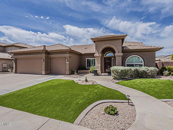 Must see!! Beautiful Ahwatukee home with mountain views, offering a bright and spacious feel throughout. The remodeled kitchen includes new cabinets, quartz countertops and new appliances. Designer wall accents, plantation shutters, and a custom built-in entertainment center add stylish touches throughout the home. A versatile flex room is perfect for a home office or additional bedroom. Step outside to your backyard oasis designed for entertaining with a sparkling pool and built-in BBQ. Efficiency upgrades include a tankless water heater, owned solar, new roof, and new windows. Sellers have truly enjoyed the quiet community and wonderful neighbors. Conveniently located near the 202 Freeway, shopping, dining and more.