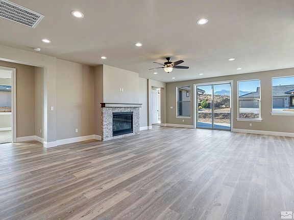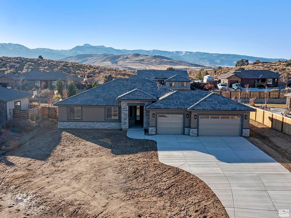 Welcome to your brand-new custom dream home! Located in a secluded neighborhood in desirable South Reno and offering the perfect blend of tranquility and natural beauty with breathtaking mountain views. This stunning residence boasts an open floor plan and a spacious great room, making it the ideal space for entertaining and relaxation., The kitchen is a chef's paradise, featuring under cabinet lighting, gas stove, double oven and top-of-the-line stainless steel appliances that will inspire culinary creativity and delight your guests. The thoughtful design and high-quality finishes make this space as functional as it is beautiful. The luxurious primary suite is a true retreat, offering a spacious walk-in shower, dual walk-in closets, a free-standing tub for indulgent relaxation, and a convenient door leading to the backyard. Every closet in the home has been upgraded with custom closet systems, providing ample storage for all your needs. With a focus on both style and functionality, this home offers the perfect combination of modern convenience and timeless elegance. Don't miss the opportunity to make this custom single-level home your own and experience the effortless luxury of secluded living with a view. Buyer's agent are responsible for notifying their clients that there may be listening and recording devices on the property, please consider this your formal notice, and ensure your clients are notified prior to entering the property. All information provided to be verified by the buyer and buyers agent. Final walk through constitutes satisfaction with information supplied herein and satisfaction with condition of the property as well as any completed repairs (if any). Seller will not close escrow until a signed final walk through or waiver has been received.