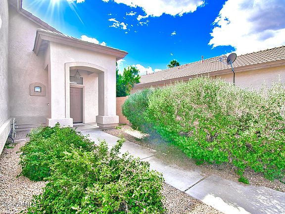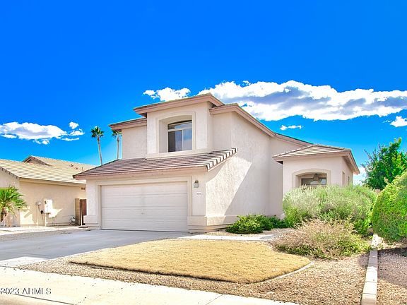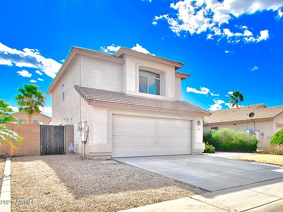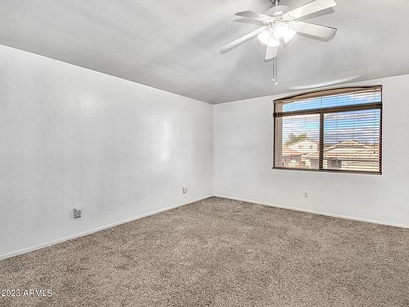 Come see this amazing home 4 beds and 3 baths. Featuring updated lighting, vaulted ceilings. New flooring in 2021. Enjoy cooking in the open kitchen equipped with black and SS appliances, lots of counter space as well as plenty of cabinets for convenient storage. Downstairs also includes a guest bed and bath. Upstairs bedrooms all sport plush carpets and ceiling fans. Sleep peacefully in the roomy master. No trouble getting ready in the attached en suite with double sinks and 2 large walk-in closets. Spacious backyard holds a covered patio and enough room for your future desert garden oasis. Garage is fully lined with built in cabinets. Don't miss out on the opportunity to own this wonderful home, call today!