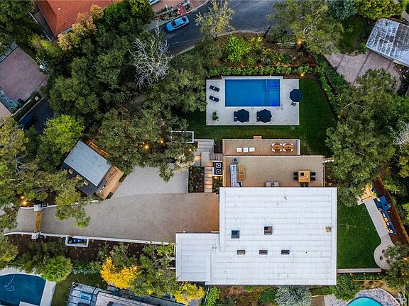 This architectural masterpiece is breaking boundaries in today's scope of modern homes by exhibiting unparalleled design & jetliner views. Privately gated w/ surrounding landscape encompasses calmness & simplicity, highlighted w/ natural light. Exemplary exterior finishes include natural stone, cedar cladding & shou-sugi-ban that continuously flows indoors & outdoors. Fleetwood doors & windows all throughout accentuate the openness of the home, capturing tremendous skylines & views. The main level of the home is designed to seamlessly integrate the external terraces, pool decks, & landscaping w/ the interior master chef kitchen featuring Calcutta porcelain counters & custom white oak cabinetry. The full entertainers bar is located alongside a stunning temperature controlled wine cellar. Second level holds 4 bedrooms where the master suite walks out to a 1,200 sqft balcony w/ a fire table and also showcases full height windows, dual walk-in closets, & a luxurious bathroom w/ floor to ceiling limestone & hand crafted Zellige glazed tile. Designated for full entertainment, the lower level is suitable for family events or fitness alongside a 12+ person cinema & concession area. Situated at the front of the property lies the guest house- perfect for an office space, recording studio, or have guests aside from the main house, features include an upper loft, murphy bed, bathroom, kitchen, & outdoor double layered deck. This home is one of a kind.
