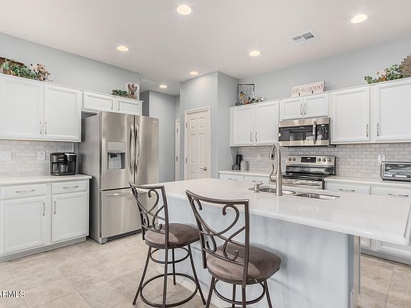 The yard has tons of possibilities, lots of room for a pool. CantaMia is Estrella's premier active adult (+55) community with a guard gate entrance, beautiful trail network and 8 lake. Located in Estrella known as the Phoeni area "Hidden Gem" CantaMia has outside beach entry heated pool/hot tub, inside heated lap pool / spa, pickle ball courts, bocce ball, billiards, art studio, IT center, cooking club, fitness center, cafe and tons of clubs including card and book clubs. A Truly Pristine Resort style living!