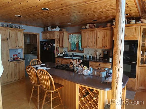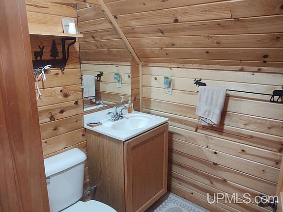 Tri-level log cabin on 475 acre inland lake; Michigans Upper Peninsula. Square footage 1500 plus. Two large out buildings for storage; 1.5 plus acres with 265 ft of lake frontage. Year round home with forced air heat, two fireplaces (one wood and one gas). Generac, on demand generator, high speed internet and Wi-Fi. Appliances included: two refrigerators, dishwasher, gas stove, microwave, washer and dryer. Nicely wooded providing much privacy. Lake Superior just 30 miles north. John Deere tractor with snowblower and pontoon boat available for sale.