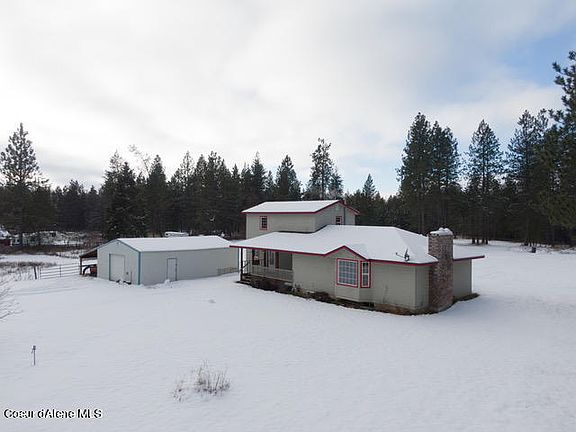 Beautiful 5 acre Rathdrum farmhouse equipped with a 24x36 shop. The pasture behind the home has potential to accomodate your horses and animals while growing an organic garden. The home boasts 3 levels on over 2400 square feet. The main level has a large great room, a fully functional kitchen to entertain your family and guests, a bedroom or office, laundry room and mudroom. The lower level features an additional family room with two bedrooms. The upper level boasts the master suite with walk in closet. Bonus feature: the roof was newly installed in 2017. Don't miss this N. Idaho charmer!
