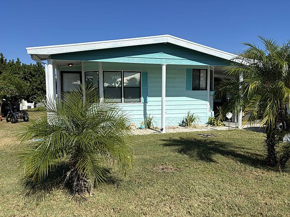 Location and the view cannot be beat! It doesn't stop there! This oversize 2/2 has the space and character that will make you feel right at home. From the premium laminate flooring throughout to the tile in the sun room, you will not be disappointed! NO CARPET! The kitchen has beautifully newly painted blue cabinets that look great with the stainless steel appliances. On one end of this wrap around kitchen you have a breakfast nook with windows and on the opposite end a dining area that overlooks the spacious living area. This layout is a great space for entertainment. The laundry room is tucked away in a large hall closet, INSIDE! Both bedrooms are spacious! The master bedroom has an over-sized walk thru closet behind a set of mirrored slider doors. The master bath has not one but two sinks! Grab bar on the wall and a walk-in shower. The guest room does not disappoint in size either. Also, a walk-in closet. The guest bath has tile floors and a full bath! Saving the best for last is the sun room! Not like any other! This sun room has a fireplace! Windows wall to wall, A/C and tile floors! This is just not a room this is extra living space you can use for just about anything! This space exceed expectations until you notice how large the carport is!! This DOUBLE partially covered carport can fit multiple vehicles and your golf cart! The home sits beautifully on a corner lot facing the club house! This home comes PARTIALLY FURNISHED. See you soon!! Located in the very desirable 55+ Foxwood Village, a Spectrum Community with 250+ Channels and 4 mbps high speed internet. Foxwood Village is an active 55 community that is pet friendly and offers great amenities like: Clubhouse with too many Social Activities to mention, Dog Park, Exercise Room, Pickle Ball Court, Corn Hole, Putting Green, Fire-pit, Heated Pool, Tiki Huts, Rec Room, Hot Tub, Showers, Dry Sauna, Billiards/Game room, Security Cameras, Social Clubs! Conveniently located near shopping, restaurants, medical facilities and just a short drive to popular Florida attractions! All homes are sold 'As Is' without warranties or guarantees by the seller and/or Broker. All listing information is deemed reliable but not guaranteed and should be independently verified through personal inspection and/or by appropriate professionals. The buyer assumes full responsibility for obtaining all current rates of lot rent, fees, or pass-on costs associated with the community, park, or home from the community/park manager.