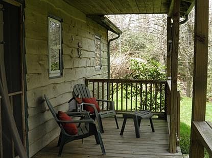 This charming 2BR/1BA furnished cottage is move-in-ready and perfect for your own weekend get-aways or to start earning income with short term rentals. Indoors - 2 BR/1BA, open space includes living room/kitchen/dining room and features tall rustic wood beamed ceilings, cottage furnishings and a large stone fireplace. Recent improvements include new laminate wood flooring, fresh interior paint. Outdoors - Enjoy your PRIVACY nestled among the rhododendrons on this quiet one acre tract with a stream.