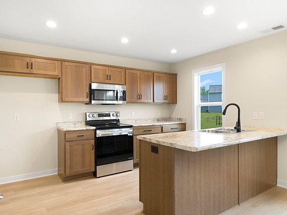 Lofted Ranch with 3 bedrooms, 2 baths with 1805 SF of living area in this home. Located on a lot with a pond view and in NWAC school system. Two of the bedrooms are on the first floor and the loft and 3rd bedroom is upstairs. The master suite has a bathroom with a 5' shower as well as a walk-in closet. The second bedroom two large windows as well as a large walk-in closet. Entering the home you have an open view all the way up to the second story ceilings. The sizeable loft area overlooks the great room below and is where the third bedrom is entered. The kitchen has a peninsula bar and has space for all to gather. Off of the nook is a covered porch and a future patio for the outdoor grilling. The exterior of the home has real sliced stone accents and has vinyl shake in the gables for the curb appeal you are after in a new home. The oversize garage has space for excess storage. LVP flooring is used in the kitchen, foyer and baths, carpet elsewhere. Ready for occupancy for a quick close. Grass is to be planted late spring of 2025. Appliance included are a electric smooth top range, dishwasher and over ther range microwave, all in the stainless steel finish.