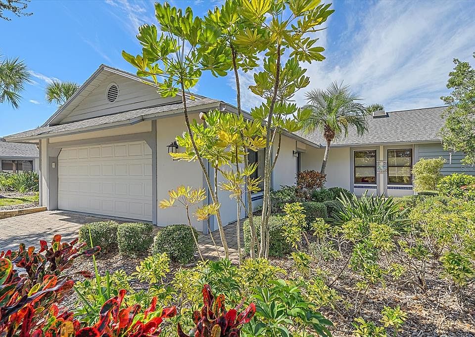 Discover an exceptional opportunity to own a beautifully renovated residence in the highly sought-after Portside Villas, located within the lush, gated enclave of The Landings. This 1,705-square-foot home combines modern elegance with timeless comfort, offering a seamless blend of style and functionality—perfect for both relaxed living and entertaining. Step inside to an open, light-filled layout featuring volume ceilings, neutral ceramic tile flooring, and a western wall of windows framing serene lake views and breathtaking sunsets. The expansive living room flows effortlessly into the dining areas, providing a perfect setting for gatherings both large and intimate. The chef-inspired kitchen is sure to impress, boasting 42-inch soft-close cabinetry, Quartz countertops, and brand-new Thermador stainless steel appliances. A formal dining room, cozy breakfast nook, and elegant dry bar with glass cabinetry offer versatile dining and entertaining options. The primary suite provides a private retreat with tranquil water views, generous closet space, and a luxurious en-suite bath. Two additional bedrooms offer flexibility for guests, a home office, or creative pursuits. Every detail has been thoughtfully curated—from fresh paint and new fixtures to hurricane-rated impact glass windows and doors and brand-new HVAC, ensuring peace of mind and lasting quality. Additional highlights include a spacious two-car garage and full hurricane protection for enhanced safety and convenience. Residents of The Landings enjoy exclusive membership to the Landings Racquet Club, featuring eight Har-Tru tennis courts, pickleball facilities, a heated swimming pool, fitness center, meeting rooms, and a well-stocked library. The community also provides 24-hour gated security and access to the natural beauty of Sarasota Bay.