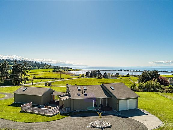 Dramatic SW views! Exquisite custom acreage home in the NW rain shadow with a dazzling detached Art Studio & Shop w/RV garage + 2 full hook-ups, all positioned against the backdrop of Whidbey’s BEST water, island, mountain and pastoral views & just a short stroll to a sandy beach at a state park. Highlights of main home: walls of windows, living room w/library, culinary haven Kitchen, Butler Pantry w/built-in Office, Primary sanctuary w/charming fireplace, enormous walk-in closet, oversize shower & jetted tub, breezeway sliders to intimate view patio/deck & 4 heat sources. Plenty of potential for expansion with floor plans available. Ask your broker for a list of Additional Features. Act swiftly to seize this rare gem!