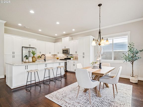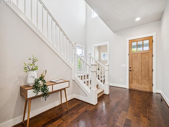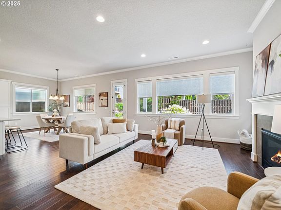 Upgraded move-in ready Craftsman in River Terrace! This better than new home features a covered front patio, open floorplan, 10ft vaulted ceilings, gas fireplace, hardwood floors, gourmet kitchen with granite island, gas appliances, pantry, high end window treatments throughout, covered back patio with bistro lights, meticulously landscaped fenced yard with irrigation, dog run and added air conditioner to stay cool. The upper level has 4 bedrooms, 2 upgraded full baths, laundry room with included washer/dryer and an open loft. The luxurious primary vaulted bedroom has french doors, double walk-in closets with built-ins, double vanity, a large soaker tub and tiled walk-in shower. There is plenty of storage in the 2-car garage with 2 overhead storage racks. Being in the River Terrace Community gives you access to a beautiful community pool, party room you can book, a gym, many play grounds, and includes your front yard landscaping maintenance. The location is super convenient with many shopping options, coffee shops, restaurants, Progress ridge, and nearby schools. Schedule a private tour!