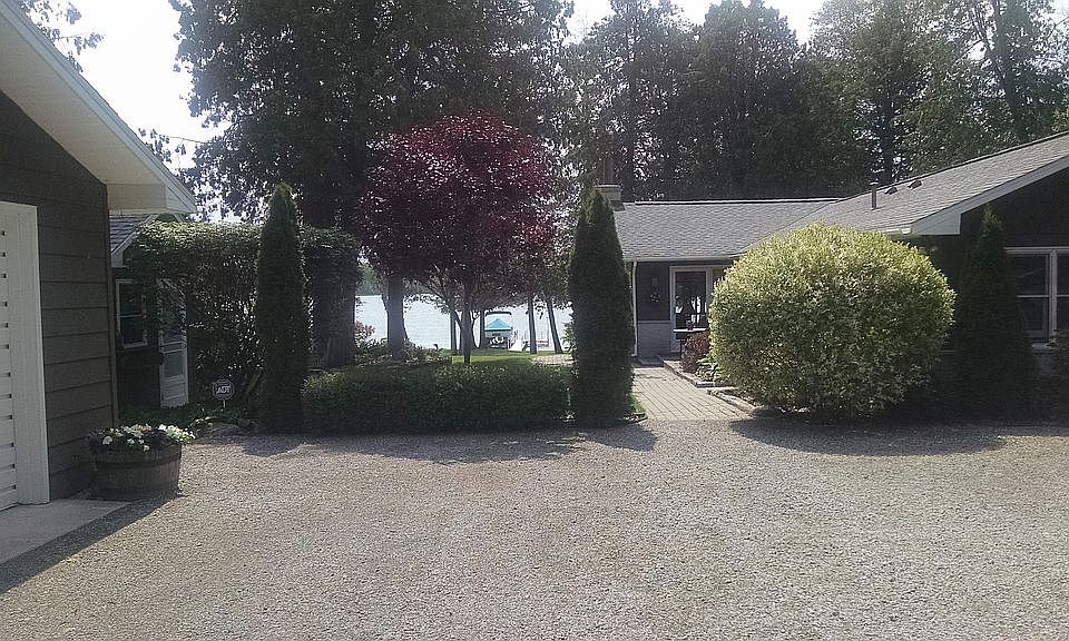 Prime Grand Lake location with a superior view. Quality built home with privacy. The spacious living room with, fireplace insert and lake view is surpassed only by the cozy dining room with wood burning fireplace and brick hearth. Small guest house with heat. Two car garage and storage sheds. Newer roof, stove & dishwasher.