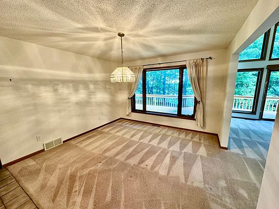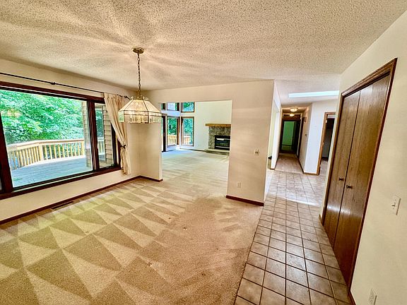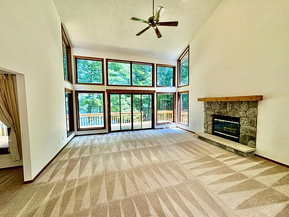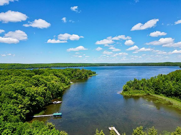 A well-constructed 3 bedroom, 2.5 bath home on very private 5.67 acres. The home is all on one level. The elevation to the lake is gentle. The cedar sided home is in good condition and has a full lower level with a waiting-to-be finished lower level. The home has a wood burning fireplace and a wood stove. The home has a 2-car attached garage and another 30 x 24 detached garage. The home has approximately 140' of frontage on legendary Kentuck Lake.