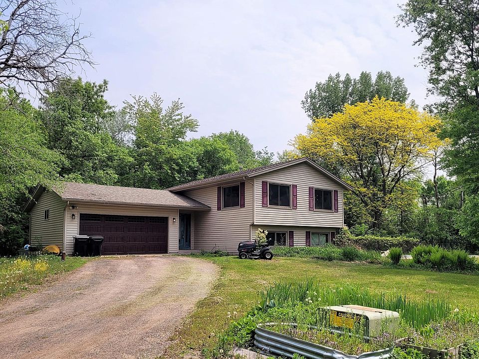 This home offers ultimate privacy located at the end of a cul-de-sac and set back from the road on a 4.2 acre wooded lot with pond. Well cared for and tastefully decorated home, nicely finished up and down. Spacious kitchen, large patio door off dining overlooks the in ground pool. Large windows in the living room. Laminate flooring throughout the main level. Full walk-through bath. The walkout lower level features a L-shaped family room with a patio door and gas fireplace. 3rd bedroom and a 3/4 bath, a laundry room can also be found in the lower level. Beautiful private acreage lot with below ground heated pool. Located just minutes to I-35. Come see why this is the place you would be proud to call home!