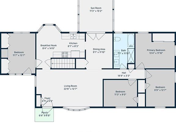 Gorgeous five-bedroom rambler on this top to bottom rehab. This unicorn gem has four bedrooms on one floor and one of them has a separate entrance (Perfect for a home office). The wood floors are gleaming and fresh paint are sure to make you want to stay. The modern bathrooms have a multi function shower head and a real soaking bathtub. Get ready for coffee with nature in the four-season porch. The basement is already done and ready to go with another finished bedroom and family room. The garage has an EV outlet.