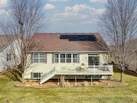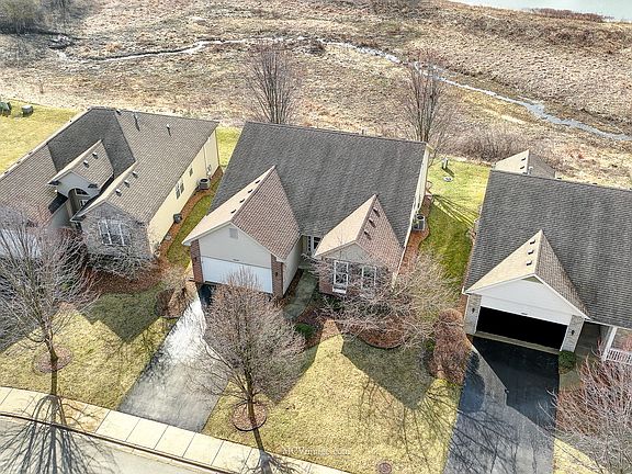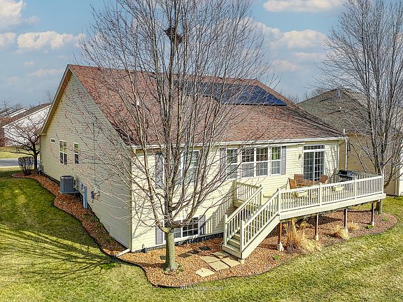 Incredible RANCH home on a PREMIUM LOT overlooks protected, natural wetlands for SCENIC VIEWS of nature all 4 seasons. The sought after Key West model has a comfortable floor plan with spacious rooms showcasing 9' ceilings and gleaming hardwood floors in the main living areas. You will feel right at home from the moment you step inside. The main living areas of the home were FRESHLY PAINTED (March, 2024) in a light, neutral color. Enjoy 2 large bedrooms, 2 bathrooms, a versatile office/den and a FULL unfinished LOOK-OUT BASEMENT with great natural light. The formal dining room can accommodate large gatherings. Two true separate living spaces with an extended family room and a large living room overlooking the picturesque, natural landscape. Highly functional kitchen layout features ample oak cabinetry with great counter space, an island, pantry closet and all appliances including a NEWER refrigerator and microwave (2023). The comfortable eating area opens to the inviting family room. Expansive primary bedroom suite boasts 2 walk-in closets and a private bath. The second bedroom has a double-door wall closet and is adjacent to a full bath with a walk-in tub. Great sized laundry room with a NEW washer (2023) opens to the 2 car garage. EXPANDED MAINTENANCE FREE DECK has an automatic awning and stairs to the professionally landscaped yard. NEWER FURNACE AND A/C - September 2022. Reverse osmosis water filter on kitchen sink. Stair lift to the basement stays with home. Solar panels offer increased energy efficiency on back of home. Lago Vista is a 55+ adult community and features lakes, ponds, a 1 1/2 mile biking/walking trail, 21,000 sq. ft. clubhouse with indoor/outdoor pools, sports lounge and fitness room, arts and crafts rooms, numerous clubs, social activities and more! Enjoy downtown Lockport, parks and festivals, shopping and dining. There are solar panels on the back of the home that provide substantial savings on your electric bill. The seller will pay off the lease in full for the next owner. Gorgeous backyard views - don't miss out!