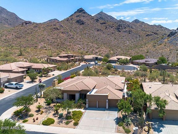Located in the gated community of Trovas at Mcdowell Mountain Ranch. Incredible lot with unlimited views of the McDowell Mountains. Home is very private with True Pride of Ownership. Owners have recently updated and have made many improvements to the house systems. Open and Light floor plan. Excellent for entertaining and enjoying the beauty of the Mcdowell Mountains. 800 bottle wine room highlights the living area. Split primary bedroom with rear patio access and excellent views of the Mountain Range. Oversized master closet. Library has a wall of custom shelving/cabinets. Large rear patio with automated shade system. Tons of shaded area. Improvements and updates are plenty. Each to show.