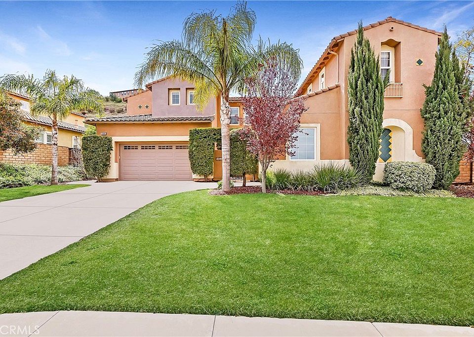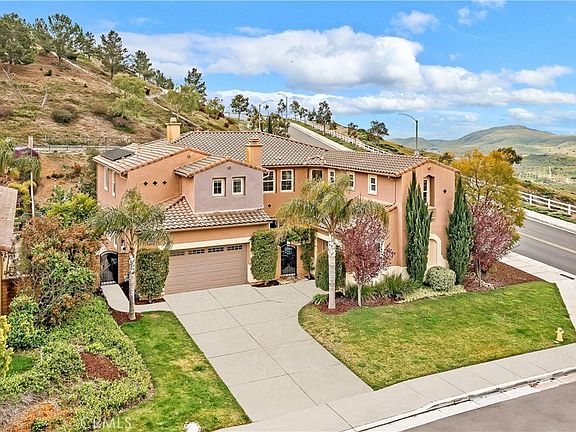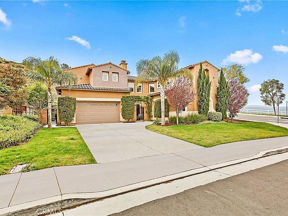 Welcome to the grand, corner lot-situated 5074 SqFt floor-plan in the exclusive hilltop community of Lake Hills Reserve. This elegant Executive Home with whole house fan and SOLAR OWNED (10 panels) greets you with a Private Courtyard w/ fireplace and sky high cathedral ceilings upon entry to the home along with brand new engineered wood floors and newly painted white walls for the perfect, warm balance. Adjacent to the entry is an Office (WHICH COULD ALSO BE USED AS A DOWNSTAIRS BEDROOM) with slider access to the Courtyard. Further into the home we have a fireplace-warmed Living Room with sky high ceilings and tall windows to showcase it as well as the Dining Room which has slider access to the Courtyard. The Kitchen with large island has granite slab counters, maple cabinets, and stainless appliances including huge built-in fridge with a Butler’s Pantry w/ stainless wine fridge as support. The Kitchen opens to the huge Family Room complete with fireplace and down the hall we have the Laundry complete with sink and extensive countertop for folding. Upstairs we have a huge Loft with city light views separating a large secondary bedroom with ensuite bathroom from the Jack & Jill bedrooms and the palatial Master complete with fireplace-warmed Retreat and private Balcony. The Master Bathroom offers a double vanity, soaking tub, standalone shower and a huge His & Hers walk-in closet. The backyard has ample landscaping all around with a putting green on the side of the home and stone steps up to a jacuzzi overlooking it all Situated on a vast expanse of 750 acres, the exclusive community of Lake Hills Reserve offers its residents an ideal mountaintop locale removed from city life, yet close to Riverside’s many cultural and educational amenities and near the shopping attractions of Tyler Mall, Riverside Plaza, and Dos Lagos. In addition to the hiking, stunning sunsets, the quiet, and panoramic mountaintop views in this patrol-guarded community, residents enjoy a private residents club including a swimming pool, playground, park, an open-air fireplace pavilion, and the HIGHLY rated Lake Hills Elementary School. This is an ideal location for commuters as the 91 FWY & Metro-link are both close by. Are you ready for the Lake Hills Reserve lifestyle…?