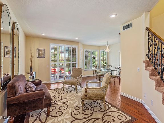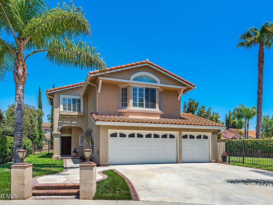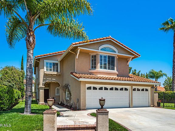 Prime end of cul-de-sac location in the 24 hour guard-gated community of Rancho Conejo in Thousand Oaks! Enter the new double doors into this fabulous home featuring four bedrooms and three full baths (one plus one downstairs). A huge bonus room on the second level has custom built-ins and a ceiling fan for your home office study, gym, game room, or studio. Living room and dining room, with custom built-in buffet, offer access to the rear yard for entertaining while the intimate family room features a fireplace with access to the side yard and patio. Remodeled kitchen with granite countertops and backsplash, stainless Kitchenaid appliances, and a custom built-in pantry. The wrought iron and wood banister leads to a loft area/home office space and a primary suite accessed via double doors; Updated bath features a Jacuzzi tub, freestanding shower and double vanities; A generous walk-in closet, sitting area,ceiling fan and balcony complete the owner's suite. Two secondary bedrooms upstairs are also generously sized and share a remodeled bath with dual sink vanity, tub & shower. The rear yard and patio has space for a sport court and room to build in your barbecue. A pretty rose garden meanders to the side yard with additional patio space and large grassy area. Some other features include plantation shutters, security system and recessed lighting. Indoor laundry area includes washer/dryer. Three car garage too! Close to Amgen, the Oaks Mall, grocery, and miles of hiking and biking trails. Welcome home!