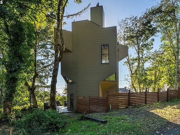 Architecturally striking ''Tree House'' in the Village of Oceanside! Located just four blocks from the beach, this iconic home captures gorgeous ocean views from every floor and a spacious rooftop deck. Designed with strong lines and natural materials, it features massive beams, warm wood interiors, angled windows, and stone-surround fireplace anchoring the upper living area. The kitchen and baths offer quartz counters and rich wood cabinetry. Recent updates include luxury vinyl plank flooring, interior paint, cedar fencing, and refreshed landscaping. Situated on a large .18-acre corner lot, this home is eligible for a short-term rental license (only 11-person waiting list). A rare blend of character, craftsmanship, and location all within a five-minute walk to the sand. Call today!