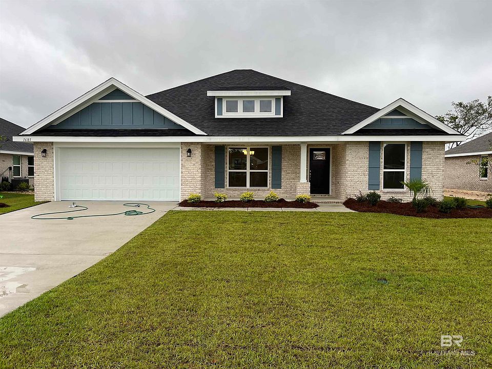 Come see this all Brick home just minutes from the boat launch and beaches! Split floorplan with 4 Bedrooms and 2 Bath and Quartz countertops throughout. GOLD FORTIFIED!! The kitchen has tile backsplash, stainless steel appliances, and a lovely shiplap accent wall in the dining room. Coretec flooring throughout and carpet in the bedrooms. Primary includes an ensuite with a tile shower and garden tub with tile surround. The garage has beadboard walls and epoxy flooring. Builder also provides a 30 AMP outlet with a transfer switch for a portable generator, a 1-2-10 yr warranty, and termite protection. This Coastal Collection will entice you the minute you arrive! Buyer to verify all information during due diligence. "Builder reserves the right to modify the interior and exterior design. Modifications and pricing may vary by home and are subject to change without notice. All dimensions and square footage are approximate and may vary. No representations are made by this floor plan. Photos, finishes, and colors shown are representations of actual materials and are not intended to be an exact match. Please consult our sales representative for complete details."