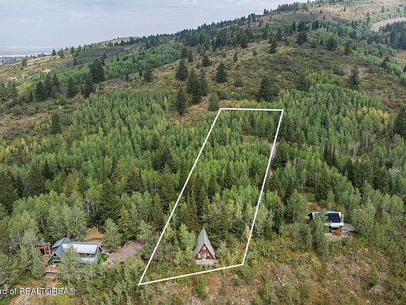 Discover a truly unique opportunity on this 1.40-acre wooded parcel, perched on a serene hillside just outside Victor. Accessed by a quiet gravel road, the property offers incredible elevated views to the east and is very close to Teton Pass. Included is an A-frame cabin built in 1975, ready for a full remodel to be used as a main home or guest house or to be removed for a fresh start. This peaceful, quiet setting borders BLM public lands and is very close to multiple trailheads, offering a perfect blend of privacy and adventure. Please schedule a time to tour the property and do not drive by or visit without the listing agent. The road is steep, it crosses many other properties, and it is hard to find the driveway to the property. No HOA but there is a shared road and water system fee.