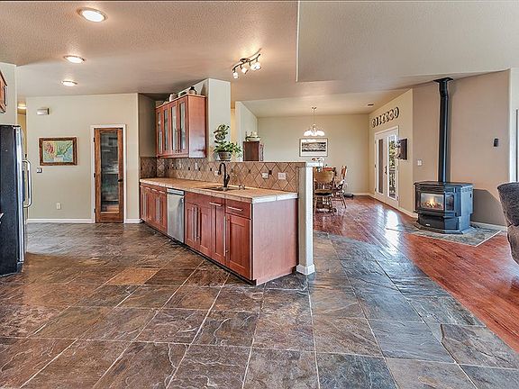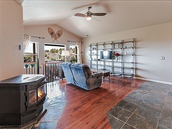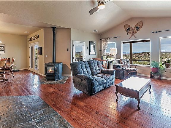 Breathtaking views for miles and miles! This great 2 story family home features 4 bedrooms, 3 bathrooms and a large gourmet kitchen perfect for entertaining. There are 2 spectacular covered decks that run the length of the home. Downstairs can possibly be converted into an in-law quarters with its own access. There are beautiful wood floors, a large laundry room with a sink and plenty of cabinets. Includes a newer pellet stove that will keep you warm in the winter months. Bring your off road toys and ride.
