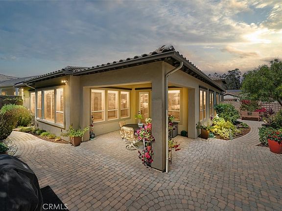 Welcome to Trilogy living in this beautiful Morro Estate home with a striking portico entrance, located just steps from the clubhouse with all the fabulous activities that make Trilogy such a wonderful place to live. Step inside the spacious foyer of this 2,760 sq. ft. 2 bedroom, 2.5 bath, plus den, home and you’ll discover an entertainer’s paradise. The open-concept floor plan features a living room and dining room divided with a double-sided fireplace, with an adjacent family room and a gourmet chef’s kitchen. This majestic home is loaded with designer upgrades, including engineered wood floors, granite countertops and plantation shutters, plus it has a super large den and a custom-built wine room with two chillers and a spirits bar. Head towards the centrally-located kitchen which features a large radius island with pendant lighting, rich raised-panel cabinetry, GE Monogram stainless steel appliances including a gas cooktop, wall oven and microwave, Bosch refrigerator and a walk-in pantry. A French door leads to the backyard which has been transformed into an oasis with impeccably-designed professional landscaping, maintenance-free pavers and a rock water feature - you’ll spend many hours relaxing in this beautiful, private setting. Evenings are a special treat in your primary suite - an oversized bedroom with a dedicated sitting area complete with a corner fireplace, plus a luxurious master bath with a soaking tub, separate dual sinks, tile shower with seamless glass enclosure, linen storage and a spacious walk-in closet - it’s a spa-like retreat just waiting for you. Your overnight guests will feel right at home in their own separate wing featuring a light and airy bedroom with full bath right next door. In addition, there’s a powder room, laundry with sink and a custom “drop zone” for keeping coats, hats and shoes easily accessible. Completing this gorgeous home is a highly sought-after 3-car garage, energy-efficient solar and A/C. Best of all, this beautiful home is located in Trilogy Monarch Dunes with resort-style amenities including Adelina’s Bistro, Sandalwood Spa, fitness center, art studio, pickleball courts, and world-class golf.
