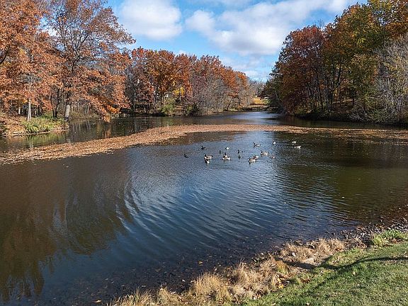 Two fireplacesStocked pondGolf practice areaBasketball half-courtShaded deckRefinished hardwood floorsMature trees