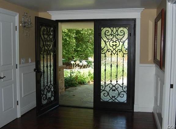 Walk through the private gated entry and up the curved flagstone path, flanked by oak trees, bright blooms, and lush lawns. Be greeted by custom glass/iron double entry doors, elegant crown molding, wainscoting, sparkling scraped wood flooring, multiples of french doors leading to fountains and gardens, and two inviting stone fireplaces. These elegantly appointed formal and informal rooms are perfect for relaxing or entertaining! Discover the gourmet in you while enjoying the massive chefs kitchen, compete with gleaming granite surfaces, stainless steel professional range, refrigerator, dishwasher, wine cooler, and glazed custom cabinetry. Relax in the master suite with a marble and glass steam shower, or sit by the crackling fireplace of the outdoor courtyard with granite counter tops and outdoor kitchen complete with BBQ, refrigerator and dishwasher. Reflect by the tranquil back yard fountain, under the lattice patio, or entertain large groups on the very private grounds nestled with curved pathways, bench seating, garden lighting, and lush lawns and landscaping. This home is a must see, and very much worth your clients time! Two luxurious master suites. 4th bedroom currently used as den w/no closet, wall could be added for privacy from garage entry