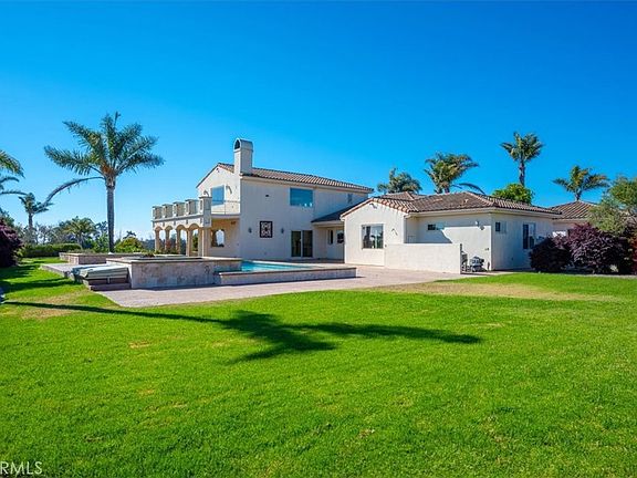 Perched atop 4.8 private acres in one of San Luis Obispo county's most picturesque settings, this sophisticated residence offers a rare blend of privacy, luxury, and panoramic views just minutes from world-class wineries and premier golf destinations. Designed with both elegance and comfort in mind, the main living area features soaring ceilings, marble floors, expansive windows, and seamless indoor-outdoor living that highlights the natural beauty surrounding the property. A chef's kitchen with premium appliances opens to both living and dining spaces, ideal for both intimate gatherings and grand-scale entertaining. Upstairs, a versatile loft area offers the perfect space for a home office, yoga studio or media room-adding dimension and flexibility to the mostly single-level floorplan. The luxurious primary suite is a serene retreat, featuring a spa-inspired bathroom, walk in closets and a private outdoor access. There is also a large game room and two wet bars making it perfect for entertaining. Step outside to a true resort style setting, complete with a gorgeous sparkling pool with fountains, hot tub, multiple lounge areas and beautifully landscaped grounds. With addition space to expand or customize with a vineyard or equestrian facilities. This estate offers endless possibilities. Securely gated and peaceful, while minutes away from Edna Valley, premier golfing and amazing beaches. This estate also also has fire sprinklers and its own hydrant on site.