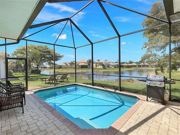 Single Family Heated Salt Water Pool Rental Home (5000 Annually or $10,000 Seasonally). This is the Seville model featuring 4 bedrooms and 3 bathrooms although the 4th bedroom includes French Door entry and is set up as an office/den. This waterfront home sits with breathtaking western sunset views and is located only a few steps to the community pool and amenities. This home has tile in the main areas and laminate wood in all of the bedrooms. Featuring a heated salt water pool, granite countertops, window treatments on every window, tray ceilings, brick paved lanai and driveway, crown molding, upgraded fans and lights, epoxy flooring in garage, and a Culligan water filtration system! Andalucia is a gated community with a community pool/ spa, playground, clubhouse and located west of I-75 just south of Pine Ridge centrally located in top rated school district. Close to Naples Beaches, shopping and airports.