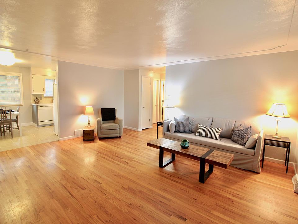 This large 4 bedroom, 2 bath side by side duplex has a fenced yard and attached 1 car garage. Approximately 2000 sqft, this home has hardwood floors in the living, dining, and upstairs bedrooms. The main level also features 2 bedrooms, a bathroom, and mudroom with laundry hook-ups. The finished basement has an additional large living area, 2 bedrooms with egress windows, and an updated bath. There is also a driveway with room to park another car.