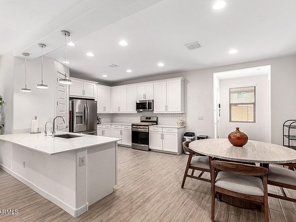 Turn-Key Ready Home In Gated Community!! No Solar! North-South Facing Lot, Perfectly Positioned For Energy Efficiency & Natural Light. Beautifully Upgraded Greatroom Open-Concept Split Floor Plan Designed For Comfort & Functionality W/ Modern Light Fixtures, Surround Sound, Wood-Look Tile Flooring,Chef's Kitchen Features Premium Appliances,Large Upper Cabinets, White Quartz Countertops w/ Generous Counter Space For Cooking & Entertaining. Private Primary Suite Tucked At The Back Of The Home w/ Enclosed Entrance to a Upgraded Bathroom Featuring Double Sinks, Cabinet space,A Large Walk-In Closet. The 2nd Hall Bathroom also has Double sinks. The Backyard Pre-Plumbed & Finished W/ Low-Maintenance Desert Landscaping.Located In One Of The Most Desirable Gated Communities Offering Walking Trails