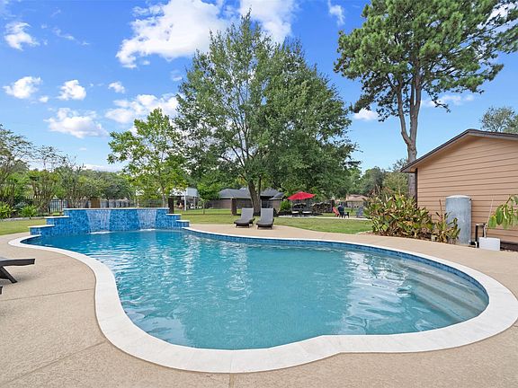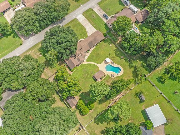 REVITALIZED 2-story home on a private 1-acre lot w/ mature trees, an oversized 3-space porte-cochere, 5 bedrooms, 3 full baths, a remodeled pool, outdoor full bath w/ a shower, & an additional storage/workshop! Renovation in 2023 included PEX plumbing, 2nd AC unit, tankless water heater, upgraded electrical, fully remodeled kitchen & baths, cabinets/hardware, granite/Quartz counters, paint, appliances, flooring, solar screens, windows, insulation, siding, & more! Inside, you'll find wood-look tile throughout the 1st floor, a formal dining, spacious den w/ a fireplace, 2 additional living areas, a breakfast nook, study, large utility room, & stunning kitchen w/ a breakfast bar! Downstairs offers 3 of the bedrooms including the primary suite w/ a walk-in closet, dual sinks, & a luxurious shower while upstairs holds the remaining 2 w/ a full bath. This home is perfect for entertaining & has easy access to shopping, dining, recreation, Hwy 249, Vintage Park, downtown Tomball, & more!