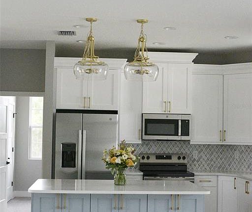 Charming New Construction Home in Marion Oaks - Packed with Upgrades! Welcome to your stunning new 3-bedroom, 2-bath home in the heart of Marion Oaks in Ocala, Florida - Horse Capital of the World! Situated on a desirable corner lot, this beautifully designed home is filled with custom features and upgrades throughout. Step through the impressive 8' custom 6 panel glass front door into an open, light-filled floor plan with luxury vinyl plank flooring and designer fixtures. The gourmet kitchen boasts GE® stainless steel appliances, quartz countertops, a custom tile backsplash, soft-close solid maple wood cabinetry, and a charming oversized island with additional storage. A stylish laundry room/walk-in pantry combo with floor-to-ceiling shelving and custom cupboards adds extra convenience and smart storage solutions. The primary suite features an oversized closet with solid wood shelving and a cozy alcove, while the spa-like en-suite bath wows with floor-to-ceiling marble tile, a glassenclosed shower, brushed gold fixtures, and double vanities. The guest bath is equally charming with black and white penny tile, upgraded fixtures, and a custom backsplash. Enjoy outdoor living on the oversized back porch and spacious yard, perfect for entertaining. Additional highlights include 3-panel interior doors, an upgraded trim package, Hunter® fans in every room, and an oversized garage. Conveniently located just 30 minutes from the prestigious World Equestrian Center and charming downtown Ocala, 40 minutes from Silver Springs State Park, and an hour from Disney. Enjoy year-round outdoor activities in this close-knit Florida community! Book your tour today!