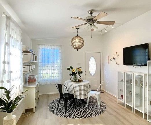 Custom built home originally for artist’s living and workspace. This 30’ x 50’ home has large open rooms with soaring ceilings, custom barn doors and lots of bright natural light. Granite and quartz surfaces at the kitchen, custom vanity and shower. LVP flooring throughout, newer stainless steel appliances, and in wall AC/heat pump units under 3 years old allowing for (low energy bills). Metal roof was reinforced with larger stainless steel screws, glued upon installation just before Ian. Notably, this is the only home whose living space Did Not Flood during Ian at the Cottage Point neighborhood. Hardie Board siding, combo composite/wood decking & stairs. Relax in the large shaded screen room with fountain, room for spa. Backyard patio has fenced courtyard for your pets, perimeter fence adds privacy. Downstairs with 500+ sq.ft. Workshop-game room-ample storage for all your sporting goods. House has 400 amp service. Downstairs shower is great after boating/outdoor activities. Big carport with beautiful sealed paver driveway and huge shelled side drive for boat and camper. Beautiful beaches, restaurants minutes from your door! Well cared for and maintained home. No mandatory HOA’s