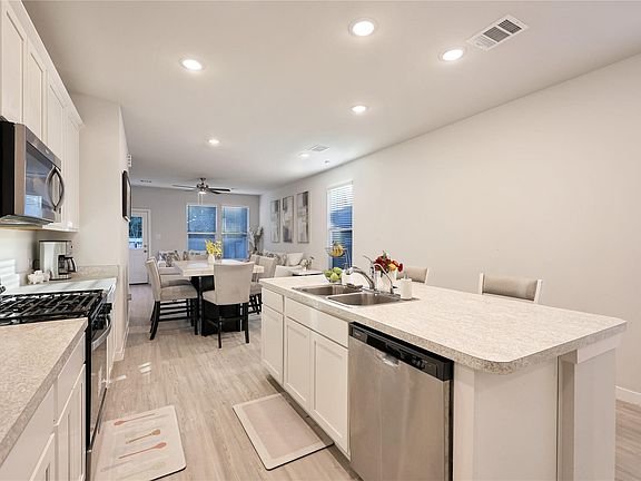 Stainless steel appliancesCeiling fansBright open layout