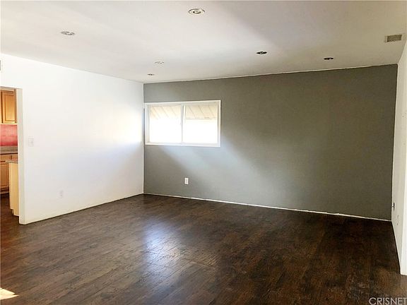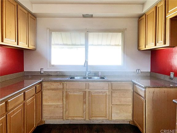 Lender owned pool home in Granada Hills. Located at the end of a cul-de-sac with a long private driveway. Double door entry leads to light and bright living room area with high wood beamed ceilings, stone fireplace and sliding glass door overlooking the backyard. Open floor plan with family room is adjacent to light and bright kitchen with granite counter tops. Additional features include hardwood floors, some dual paned windows, recessed lighting and attached garage with direct access. Master bathroom with full bathroom. Two additional well sized bedrooms, one with sliding glass door leading to the backyard and additional guest bathroom Backyard with covered patio, citrus trees and pool.