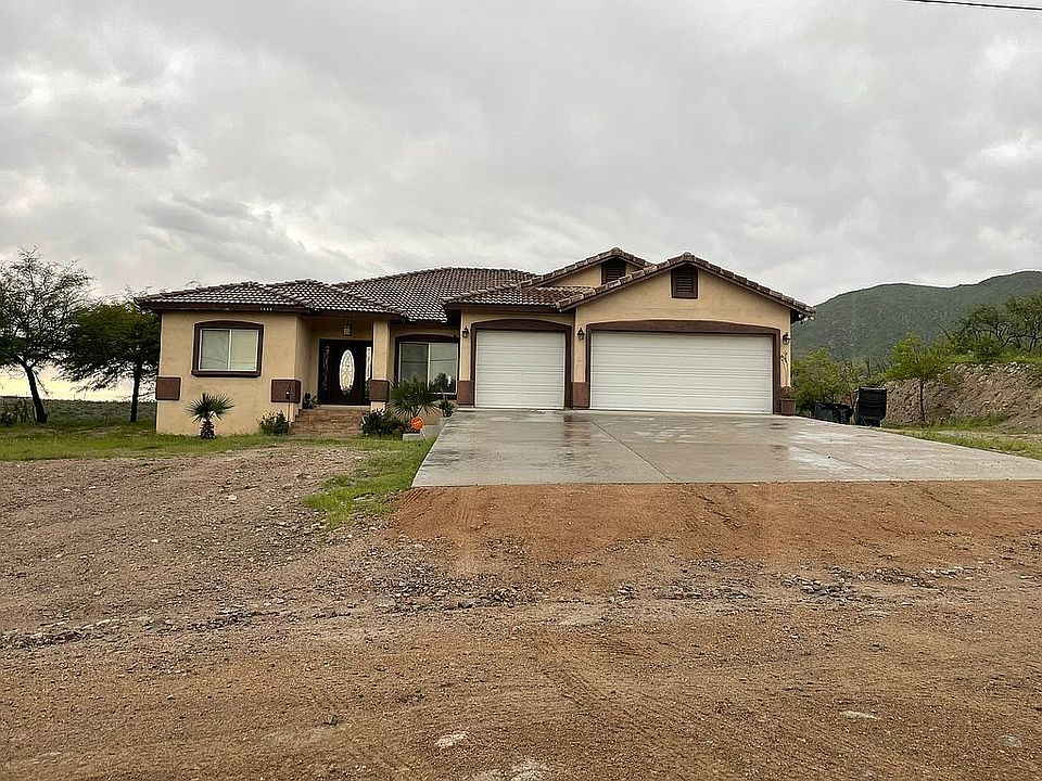 It has 4 bedrooms. The master bedroom with master bath and walking closet connected. One bedroom with its own Bathroom and the other two bedrooms share one bathroom. Has a living room (vaulted ceiling), a family room (vaulted ceiling), kitchen, pantry, laundry room and a three car garage. Two AC units. All the bathroom sinks and the kitchen are wired for tankless water heater. Right now it has a tankless water heater for the whole house which gives you endless hot water supply. It has six solar tube skylights, a 14” in the garage, a 12” in the walking closet, a 12” , a 12” in the kitchen, a12” in the hallway to the bedrooms and a 12” in the laundry room. Also has three exhaust fans installed in the attic to remove the hot air, activated with thermostats. Two ceiling fans in the master bedroom. Two in the family room, two in the living room and one on each of the bedrooms. No HOA fees. Attached are also the views you have from the four sides of the house. Driveway is included. The road will be chip sealed next Spring season.